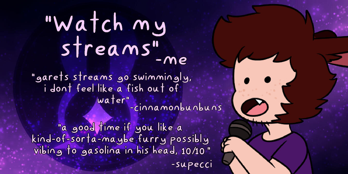 Hey! I'm Garet, I go by he/him, and I'm a gay trans man who wants to share his creativity w/ the world!